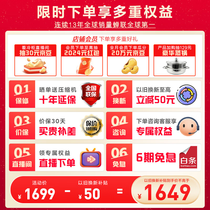 4、送货很快,今天就收到了,1级能效比较省电,放厨房大小也合适,以后冷冻应该够用了,夏天到了,可以囤货了。