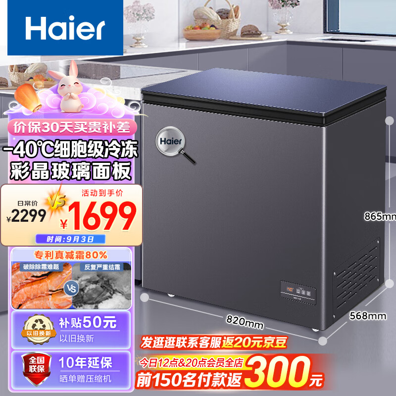 海尔(Haier)200升-40℃彩晶低霜能效小冰柜家用商用冷藏柜冷冻柜冰柜小型小冰箱小型冷柜200GHEPGD以旧换新价格:1699.00元!