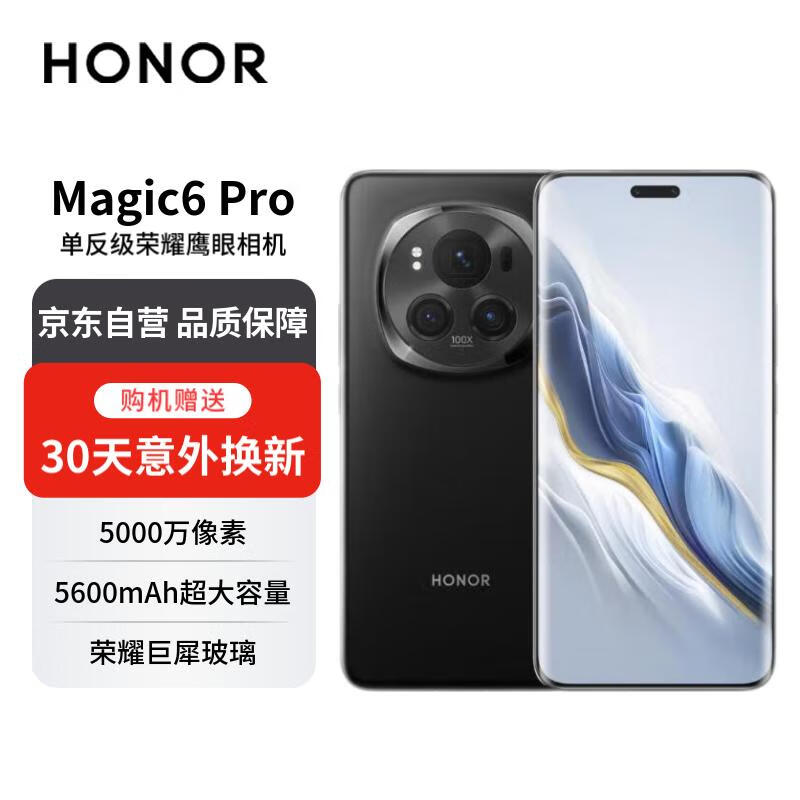 荣耀Magic6 Pro 荣耀鸿燕通讯 单反级荣耀鹰眼相机 荣耀巨犀玻璃 5G手机 16GB+512GB 绒黑色【赠服务】价格:5899.00元!