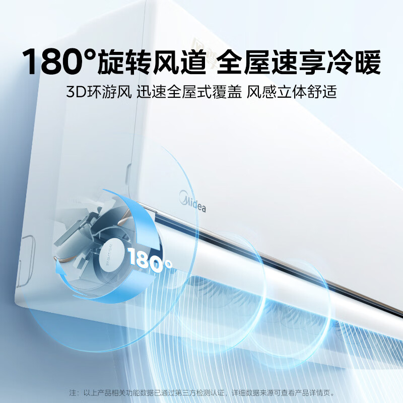 1、制冷很快,开到强风档风声不大,噪音很低,送风距离远,风速开到50%,基本听不到风的声音,装在20平米的客厅(敞开式阳台)制冷效果明显,晚上卧室基本不用开空调就可以,外观美观,操作便捷,安装师傅认真负责,物流也快。