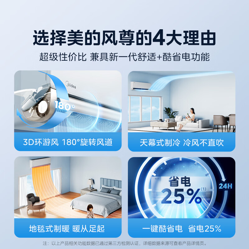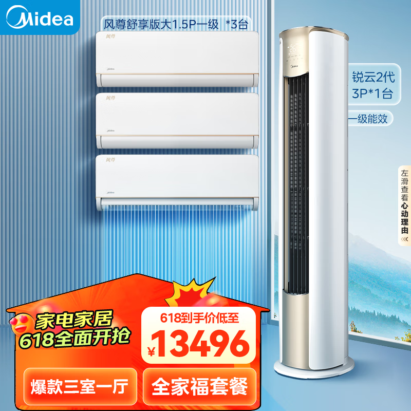 美的(Midea)空调 新一级能效 风尊 锐云 空调套装 全家福套餐(大1.5匹*3风尊舒享版+3匹锐云)价格:13896.00元!