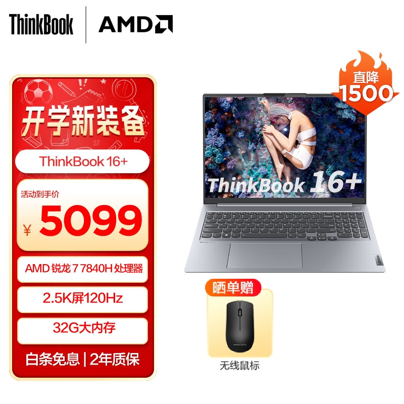 ThinkPad联想ThinkBook16+/14+ 锐龙版标压处理器 轻薄商务办公笔记本电脑 高清屏120Hz刷新率 R7-7840H 32G 1T 08CD价格:5099.00元!