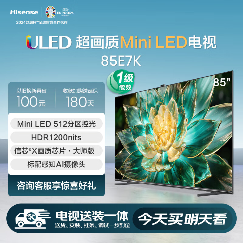 海信电视85E7K 【送装一体版】 85英寸 ULED X Mini LED AI摄像头超感知 液晶智能平板电视机价格:7998.00元!