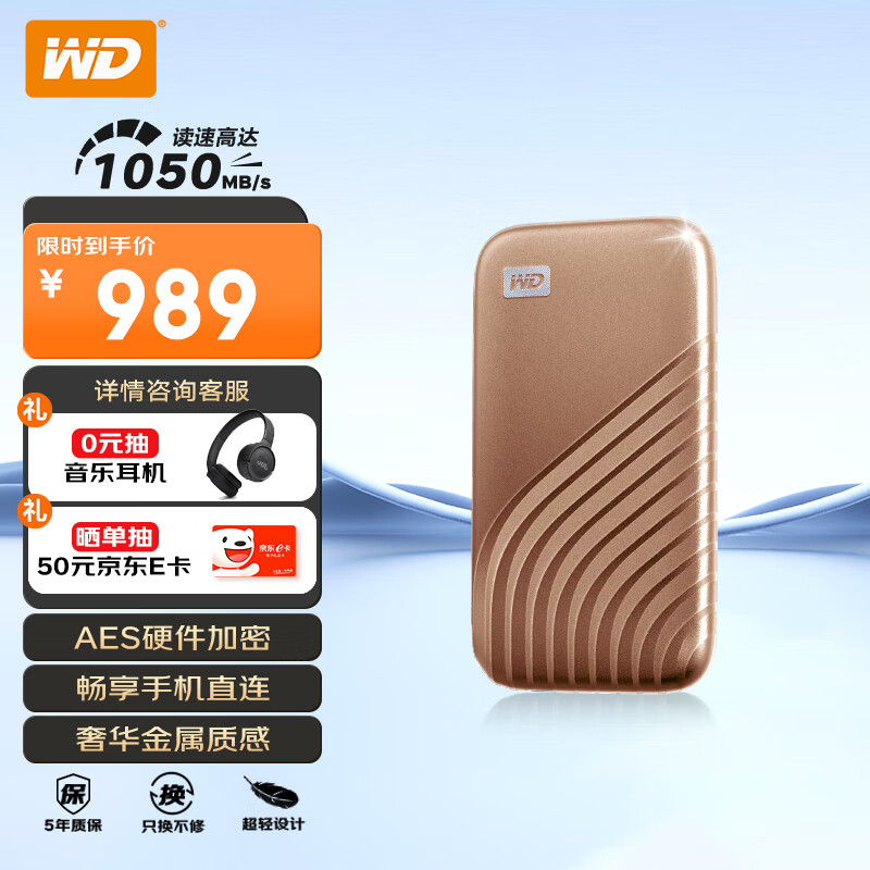 西部数据(WD)2TB NVMe 移动固态硬盘(PSSD)My Passport随行SSD type-c接口 1050MB/s 手机笔记本外置外接价格:989.00元!