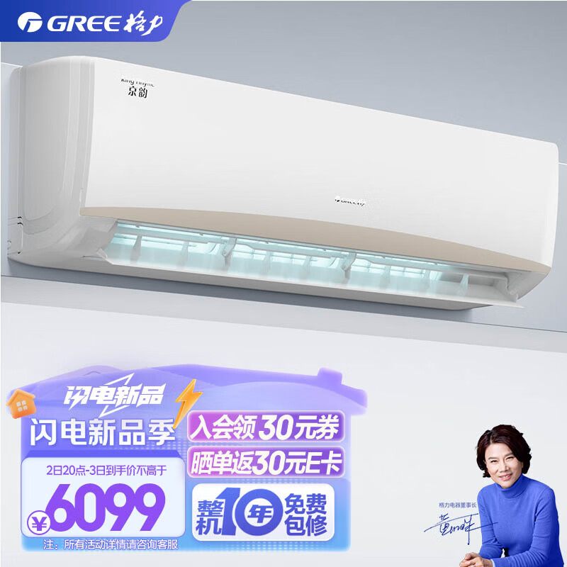 格力(GREE)空调 京东小家智能生态 3匹 京韵 新能效变频 壁挂式 客厅商铺挂机 格力空调KFR-72GW/NhIe3BAj价格:6099.00元!