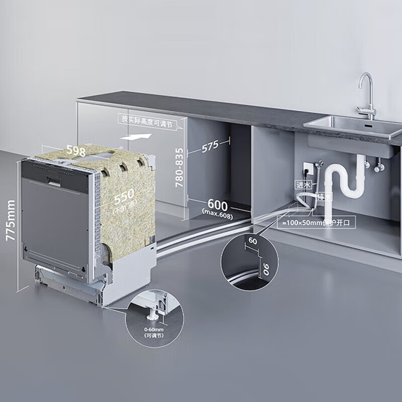3、洗碗机非常好。12头可以放很多碗了,也可以放下一两个锅,下层还是比较高的。物流很快,安装师傅也很有耐心,