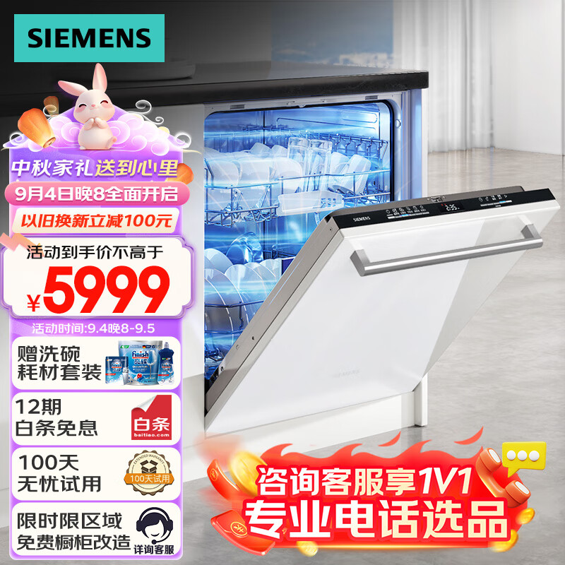 西门子14套全能舱auto洗碗机嵌入式升级款636pro 变频 一级水效 智能烘干 存储 SJ63EX00KC(含白门板)价格:5999.00元!