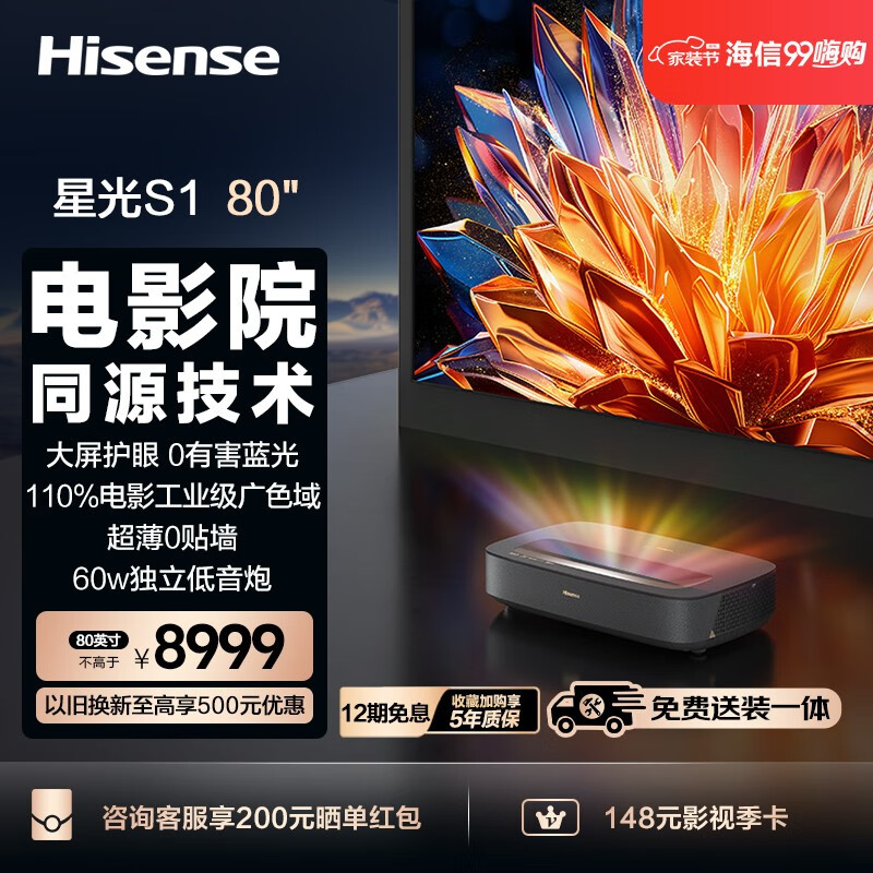 海信激光电视 星光S1 80英寸三色激光家庭影院 大屏护眼 电影院同源技术 超薄 菲涅尔巨幕 黑神话悟空价格:8999.00元!