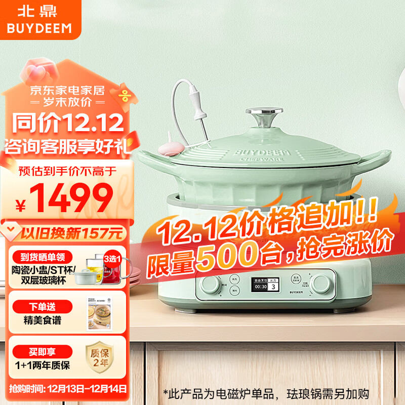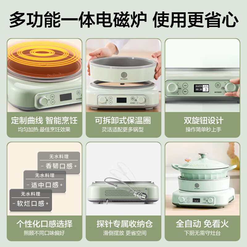 北鼎(Buydeem) 电磁炉电陶炉多功能一体家用大功率全自动节能小型灶恒温匀火烹饪一键预约【浅杉绿】价格:1499.00元!