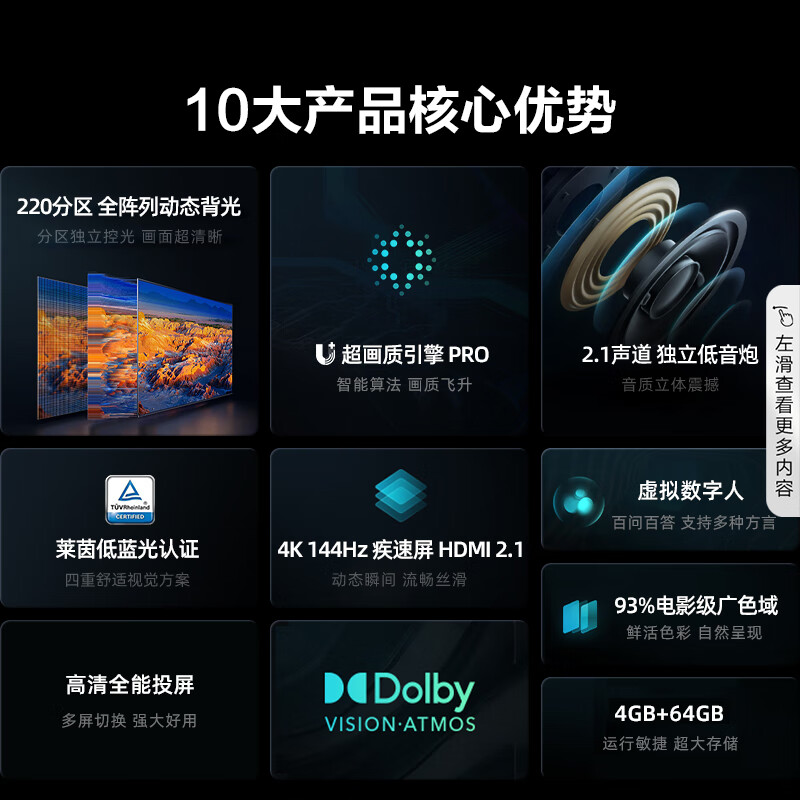 3、电视机收到了真的很棒,比那些两三干的强太多了,送货也快喜欢的赶紧买吧!