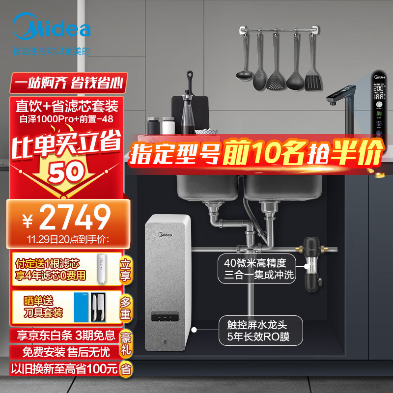 ???ģ?Midea??ʡоֱ????ˮ????װ??????1000Gpro+ǰ?ù?????-48??????ʽ????ˮ??ͷ RO????????һ?徻?????۸???2749.00Ԫ??
