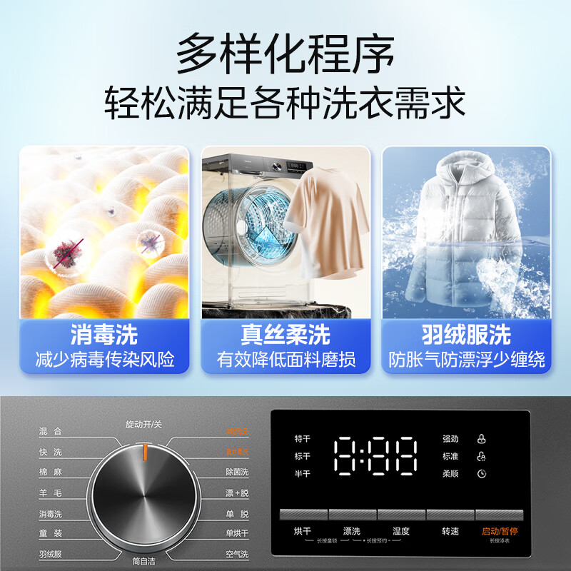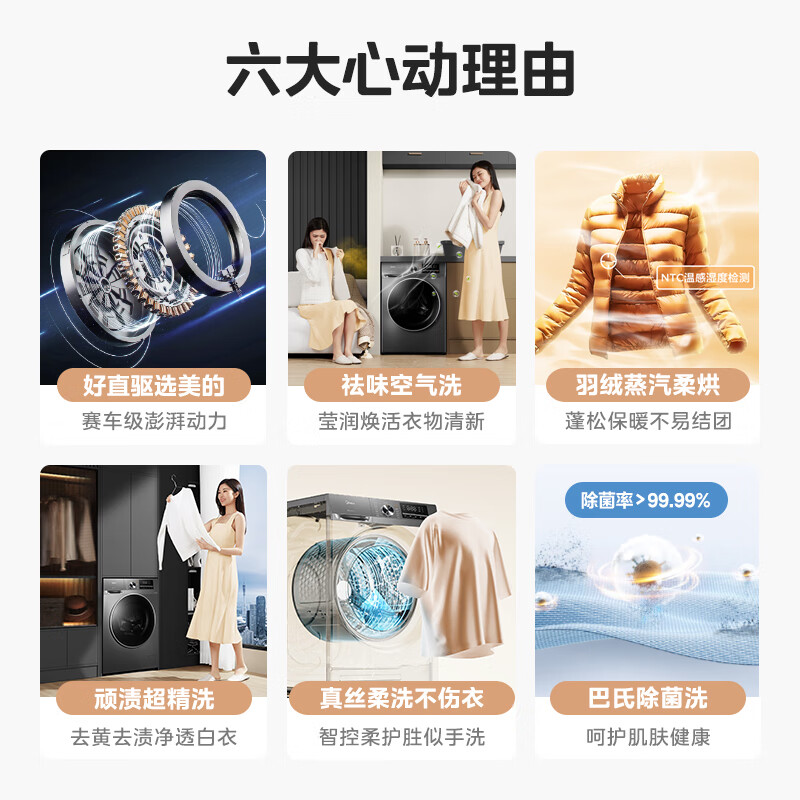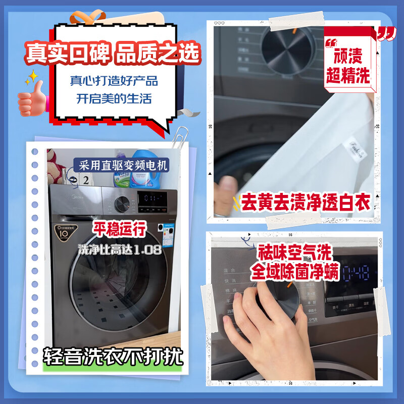 美的(Midea)滚筒洗衣机全自动 轻净直驱系列 洗烘一体机 直驱变频 顽渍超精洗 1.08洗净比 10公斤 MD100V630DE价格:2199.00元!