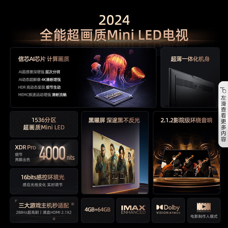 电视类型:智能电视,K歌电视,大屏4k超清,MiniLED,游戏电视