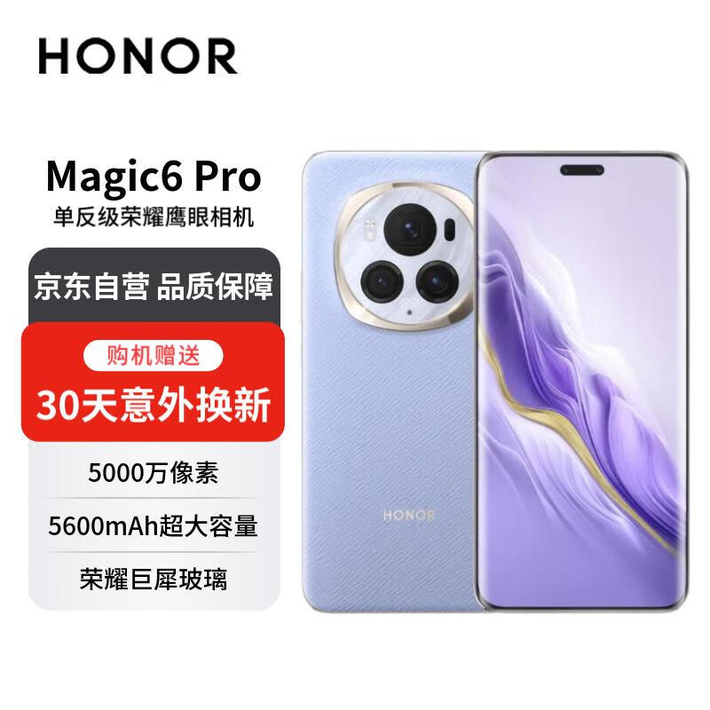 荣耀Magic6 Pro 荣耀鸿燕通讯 单反级荣耀鹰眼相机 荣耀巨犀玻璃 5G手机 16GB 512GB 流云紫【赠服务】价格:5899.00元!