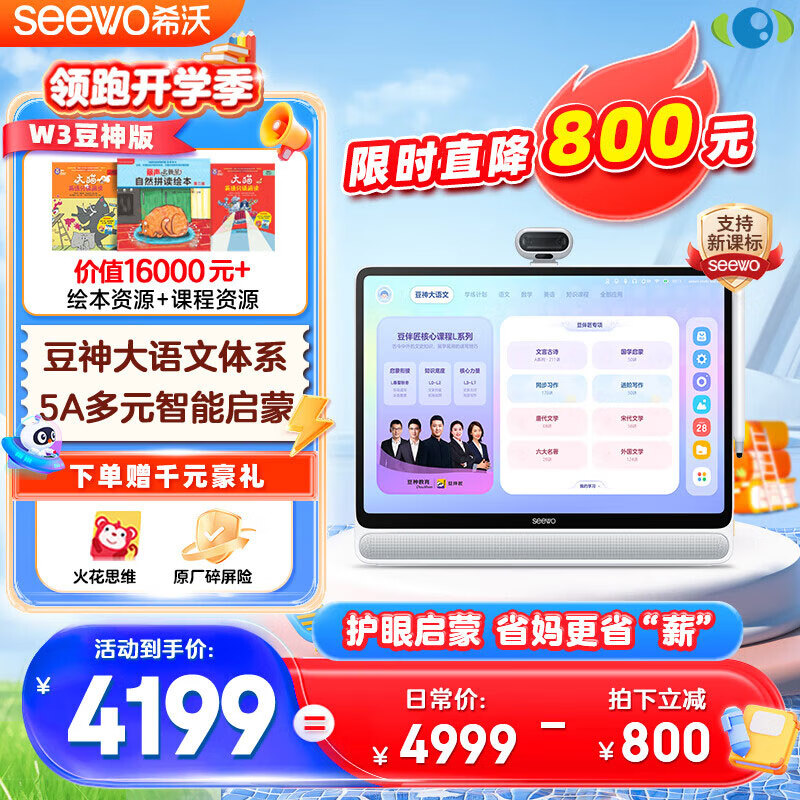 希沃学习机W3豆神限量款大语文类纸护眼大屏学生平板电脑小学到高中同步英语学习早教机8G+128G皓月白价格:4199.00元!