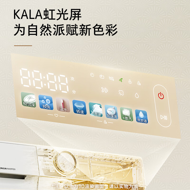 3、洗衣机外观真的太好看了很大气,我的洗脸盆做的刚刚好,严丝合缝的放了进去,自洁模式默认的是高水温杀菌,自洁时间一小时十八分钟,乔迁新房后再仔细研究,好评好评