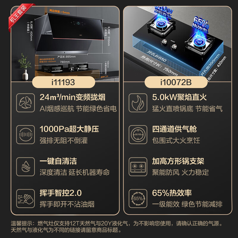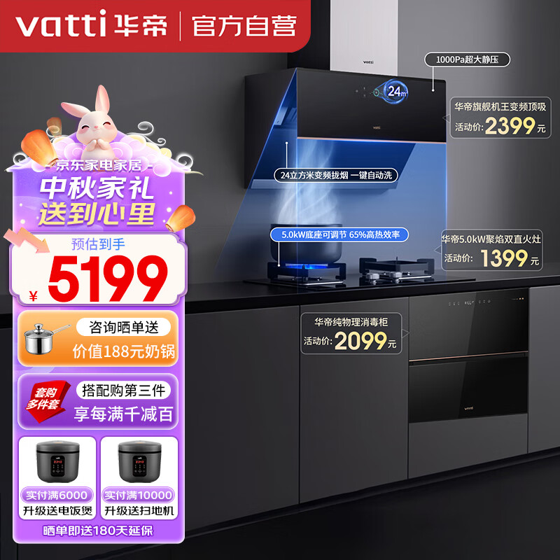 华帝(VATTI)抽油烟机旗舰机王侧吸式变频油烟机燃气灶具消毒柜家用厨房三件套i11193+72B+3040(天然气)价格:5199.00元!