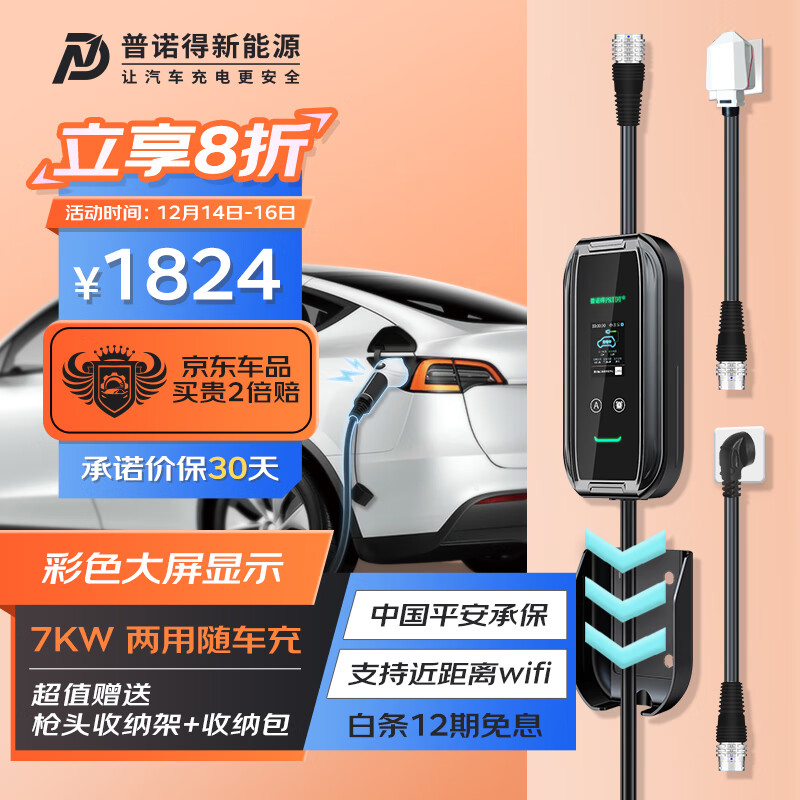 普诺得新能源电动汽车随车充电器 16A/32A7KW家用固定便携式两用充电桩价格:2280.00元!