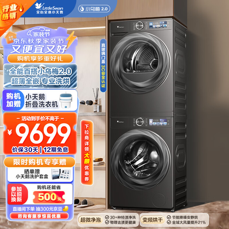小天鹅(LittleSwan)洗烘套装 10KG滚筒洗衣机+变频热泵烘干机 超薄全嵌 超微净泡【小乌梅2.0】TG100RVICPRO+83PRO价格:9699.00元!