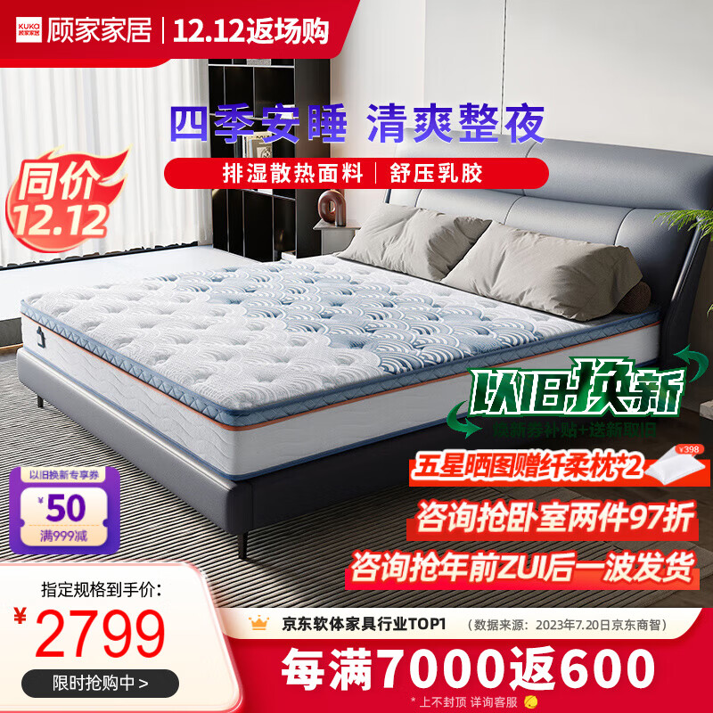 顾家家居(KUKA)排湿快干乳胶亚运床垫1.8米乳胶床垫透气垫M0099C 【京仓闪发】价格:2799.00元!