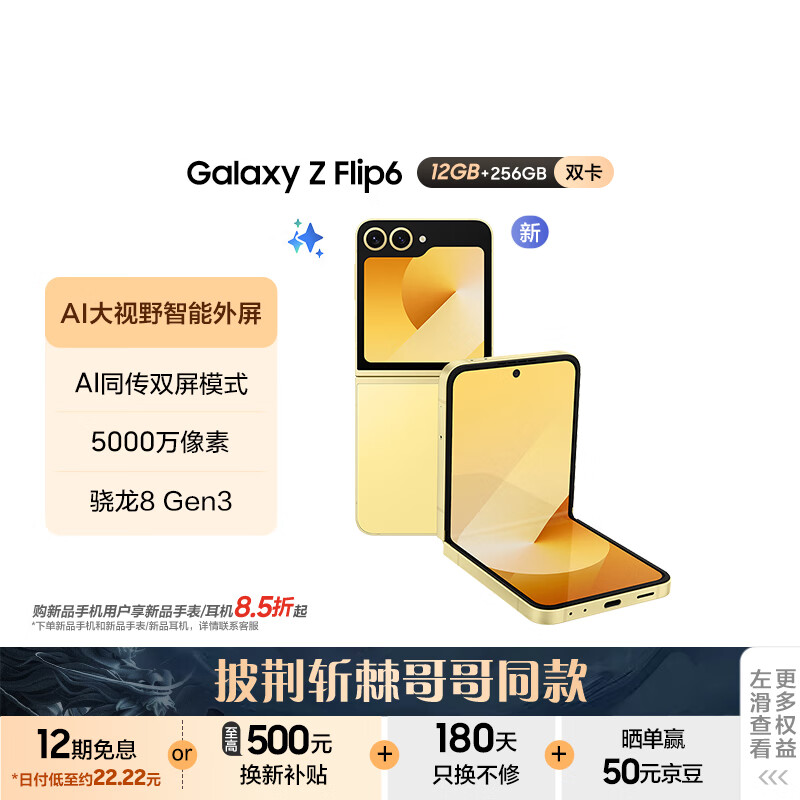 三星(SAMSUNG)Galaxy Z Flip6 AI手机 披荆斩棘哥哥同款 大视野智能外屏 双卡 折叠屏 12GB+256GB 热爱黄价格:7999.00元!