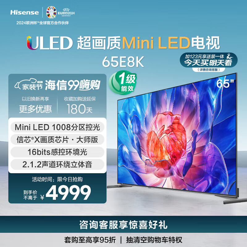 海信电视65E8K 65英寸 ULED X Mini LED 1008分区控光 4K 144Hz屏 液晶智能平板电视机价格:4999.00元!