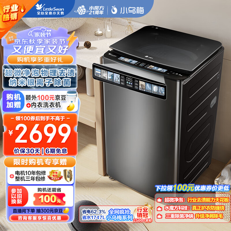 小天鹅(LittleSwan)波轮洗衣机全自动 小乌梅 【TB100V85PLUS] 水魔方防缠绕 超微净泡洗 直驱变频 炫彩大屏 10公斤价格:2799.00元!