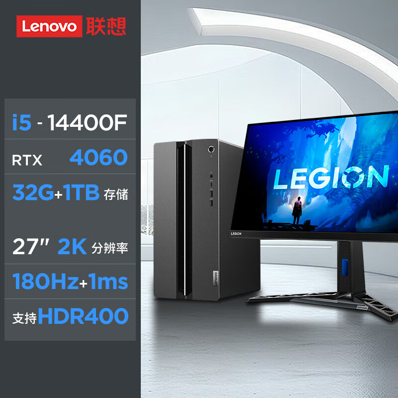 联想(Lenovo)GeekPro设计师游戏台式电脑主机(酷睿14代i5-14400F RTX4060 8GB显卡 32G DDR5 1T)27英寸电竞套装价格:7799.00元!