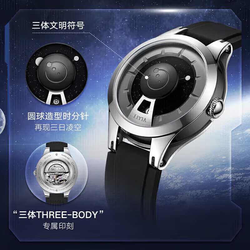 飞亚达丨三体联名 “三体文明”主题黑盘硅胶带机械男士腕表 节日礼盒男价格:2899.00元!