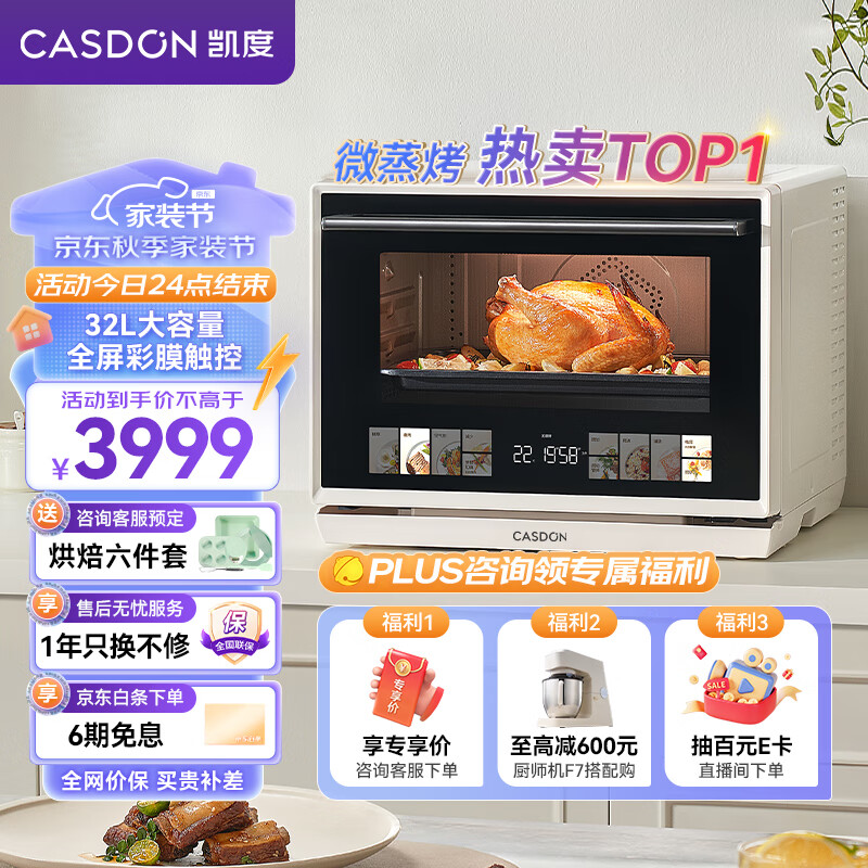凯度(CASDON)微蒸烤一体机 蒸烤微炸四合一 家用微波炉烤箱一体机水波炉光波炉烤箱蒸箱空气炸蒸烤箱一体机B8价格:3999.00元!