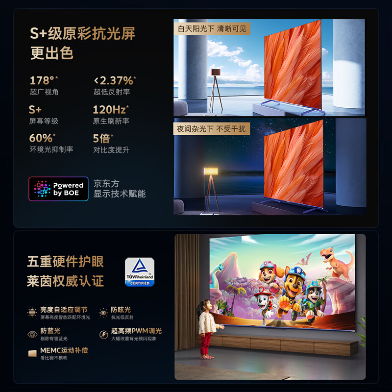 1、十年前买的是创维电视,年前突然开不了机了,早就想换4k高清的了,这款还是护眼的,就买新的了,物流很给力,廿八下单,廿九就到货了,过年有新电视看了,电视机外观不错,也高清,挺好的,开心过年