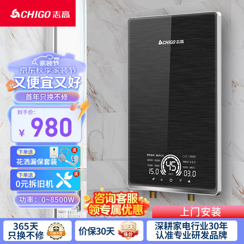 志高(CHIGO)即热式电热水器超薄8500W智能变频恒温速热小厨宝省电家用出租屋洗澡免储水功率可调ZG-KB812价格:1480.00元!