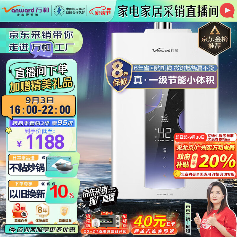 万和(Vanward)燃气热水器16升天然气小体积【真·一级节能】智控水伺服 ME5J16(ME5T同款) 以旧换新价格:1199.00元!