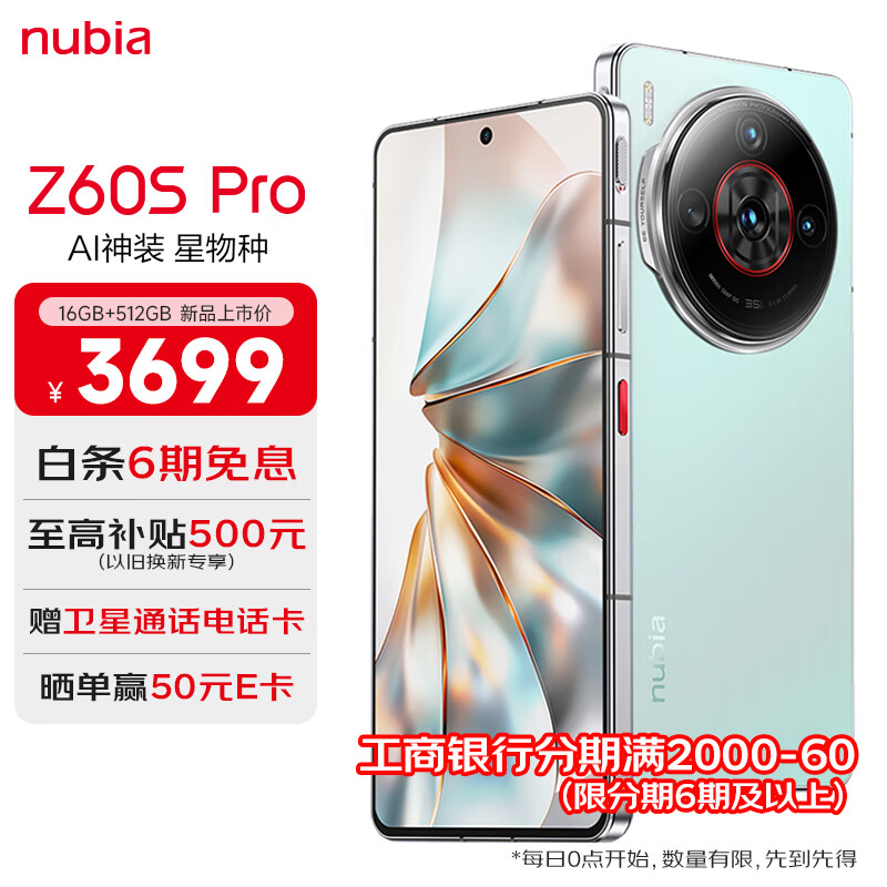 努比亚(nubia)Z60S Pro 16GB+512GB碧海青 后置三摄120Hz直屏长续航 5G手机游戏拍照 卫星通信手机价格:3699.00元!