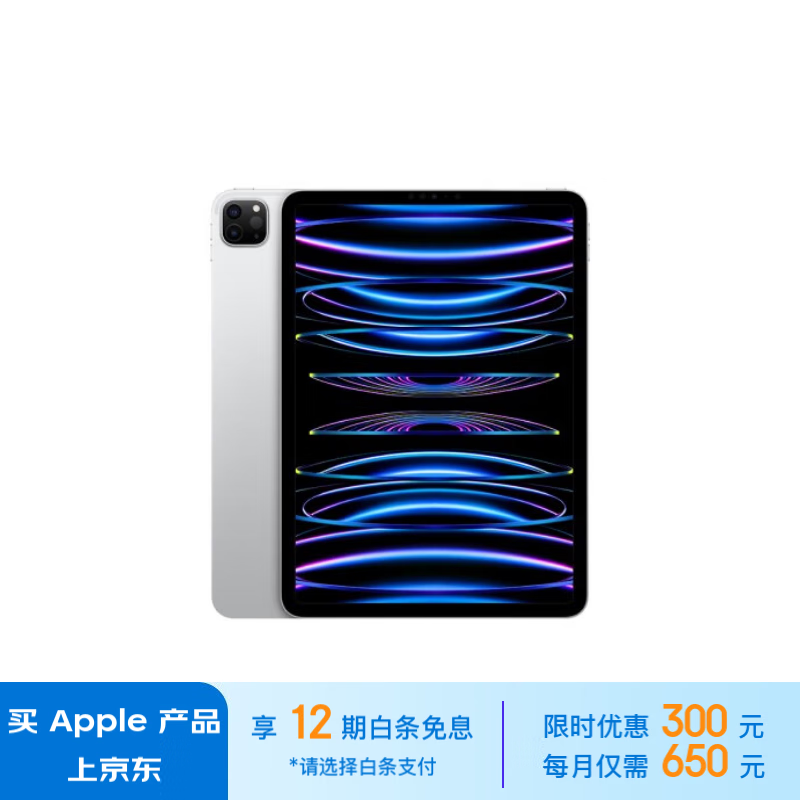 Apple/苹果【12期免息】iPad Pro 11英寸平板电脑 2022年款(256G WLAN版/M2芯片/MNXG3CH/A)银色价格:8099.00元!