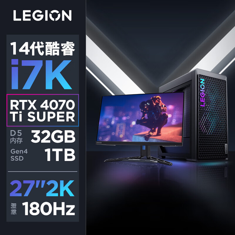 联想(Lenovo)拯救者刃7000K 2024游戏电脑主机(酷睿14代i7-14700KF RTX4070TiSuper 16GB显卡 32G DDR5)27英寸价格:16199.00元!