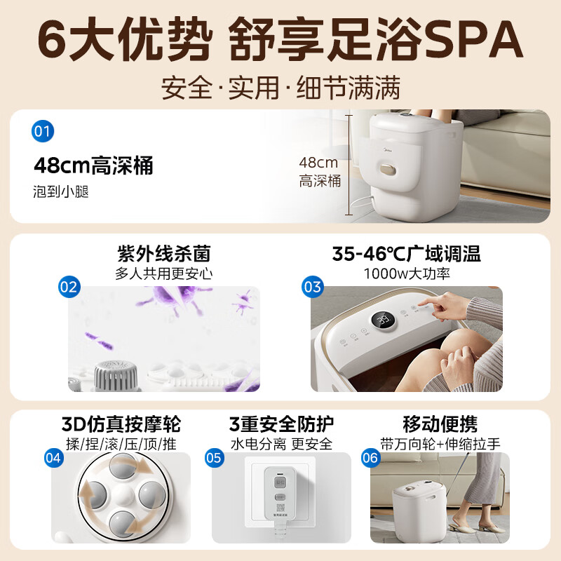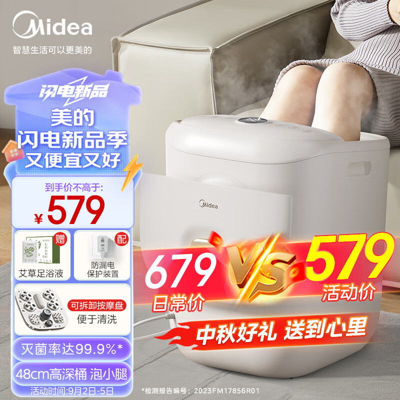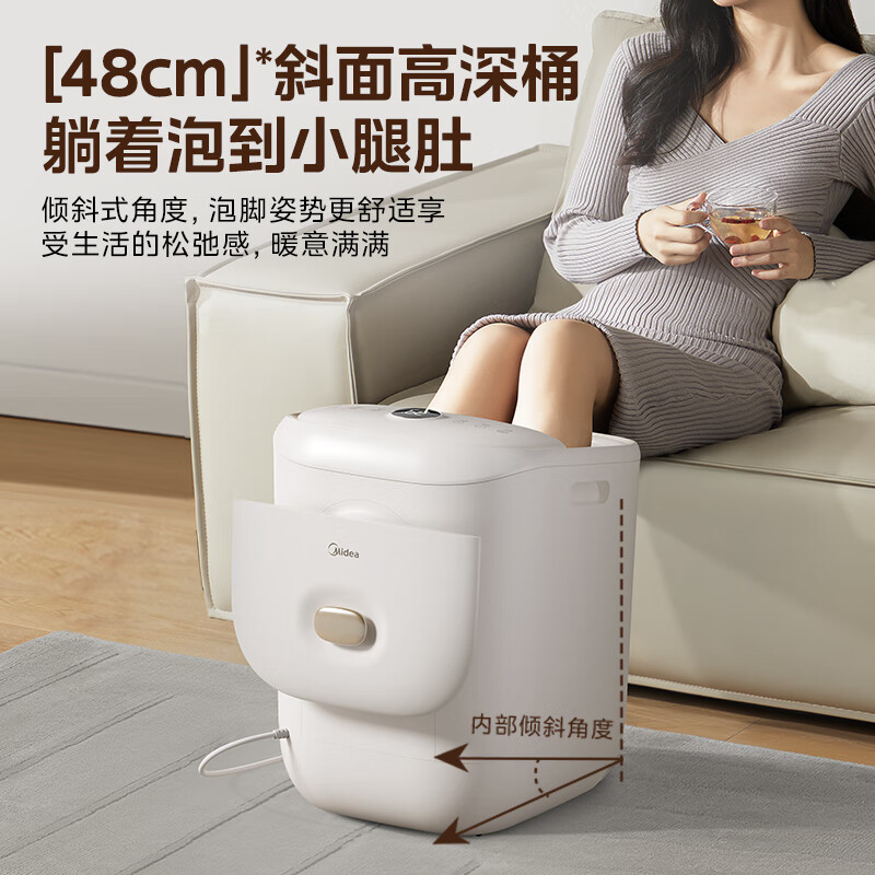 美的(Midea)泡脚桶杀菌洗脚盆加热自动按摩足浴盆泡脚盆泡小腿按摩盘可拆洗教师节 中秋节礼物ZL2暖阳白价格:579.00元!