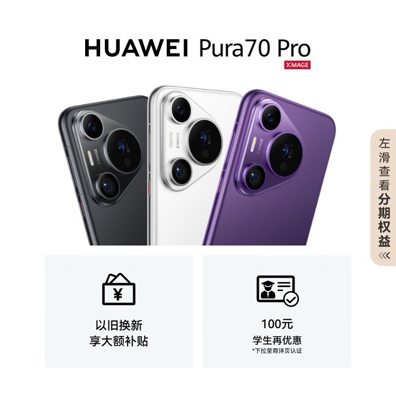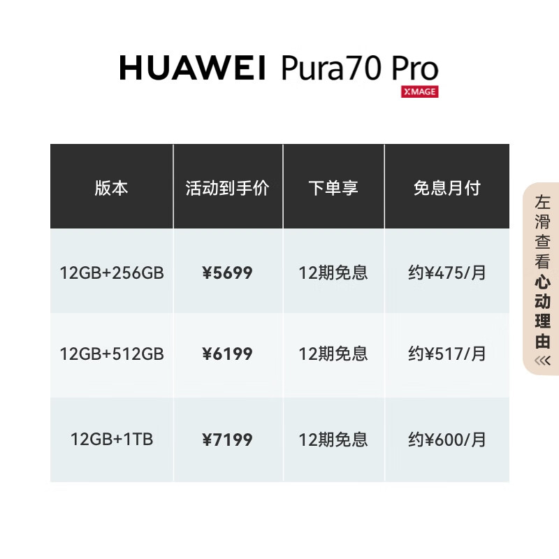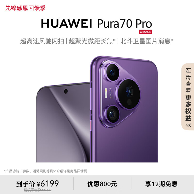 HUAWEI Pura 70 Pro 罗兰紫 12GB+512GB 超高速风驰闪拍 超聚光微距长焦 华为P70智能手机价格:6199.00元!