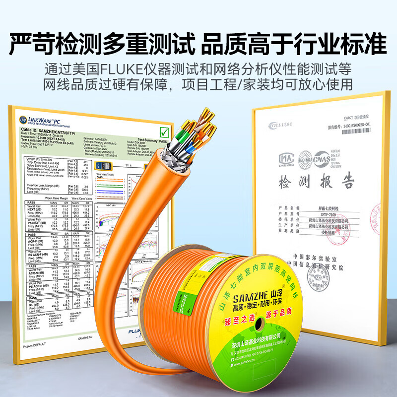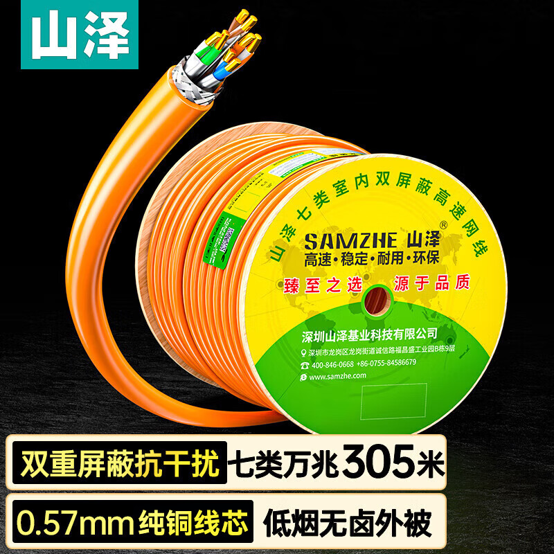 山泽 七类双屏蔽网线 低烟无卤纯铜箱线 CAT7类工程家装万兆网络宽带线 橙色305米 SFTP-7300价格:1374.30元!