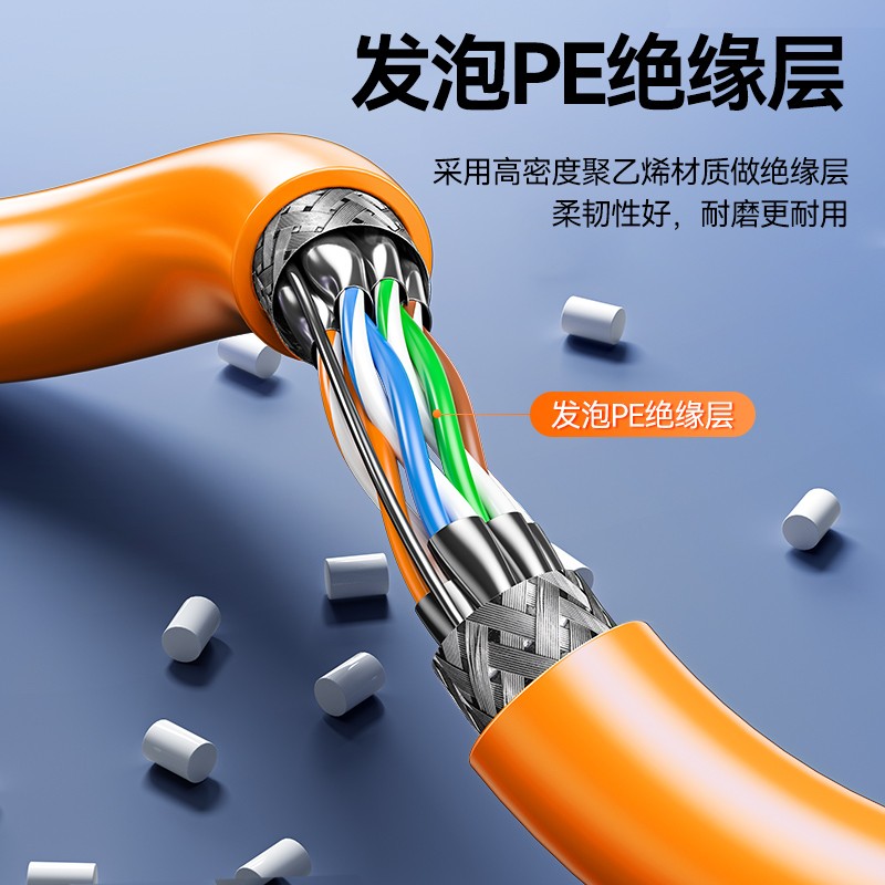 5、家里装修,为了游戏不卡顿,选了山泽七类网线,支持千兆网,电工师傅说这个网线比电视线都粗,每三根都用铝箔包裹,双屏蔽,质量很好!