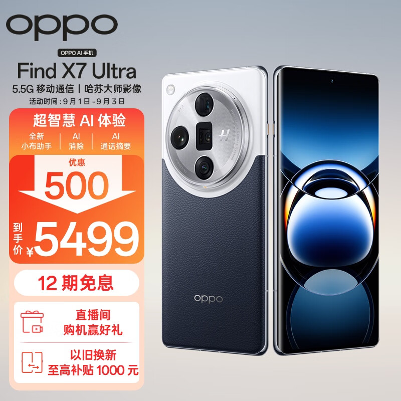 OPPO Find X7 Ultra 12GB+256GB 海阔天空 1英寸双潜望四主摄 哈苏影像 第三代骁龙8 5.5G 拍照 AI手机价格:5499.00元!