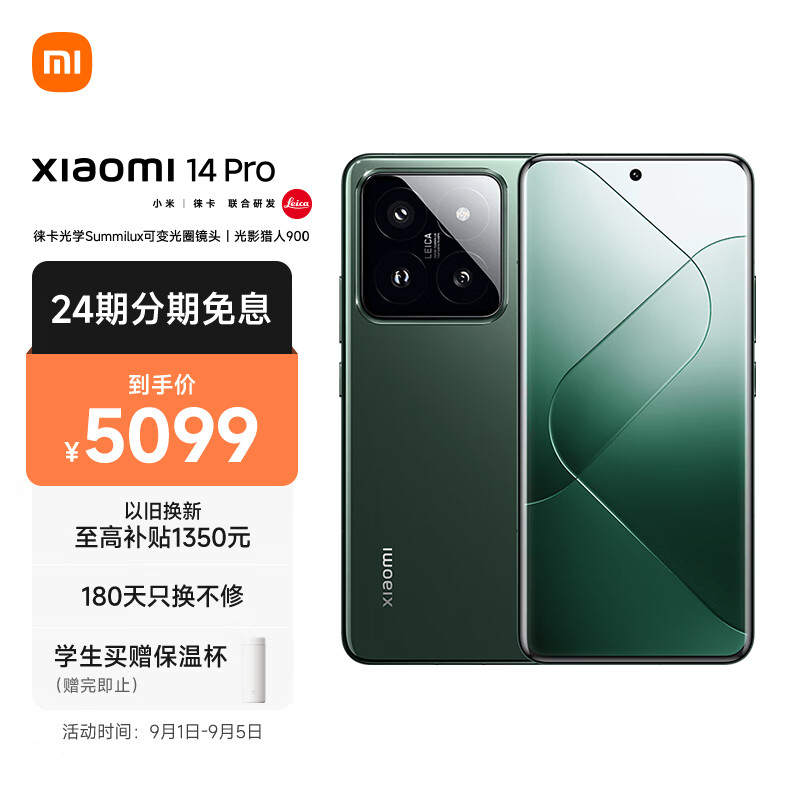 小米14Pro 徕卡可变光圈镜头 光影猎人900 第三代骁龙8 16+512 岩石青 5G手机 SU7小米汽车互联价格:5099.00元!