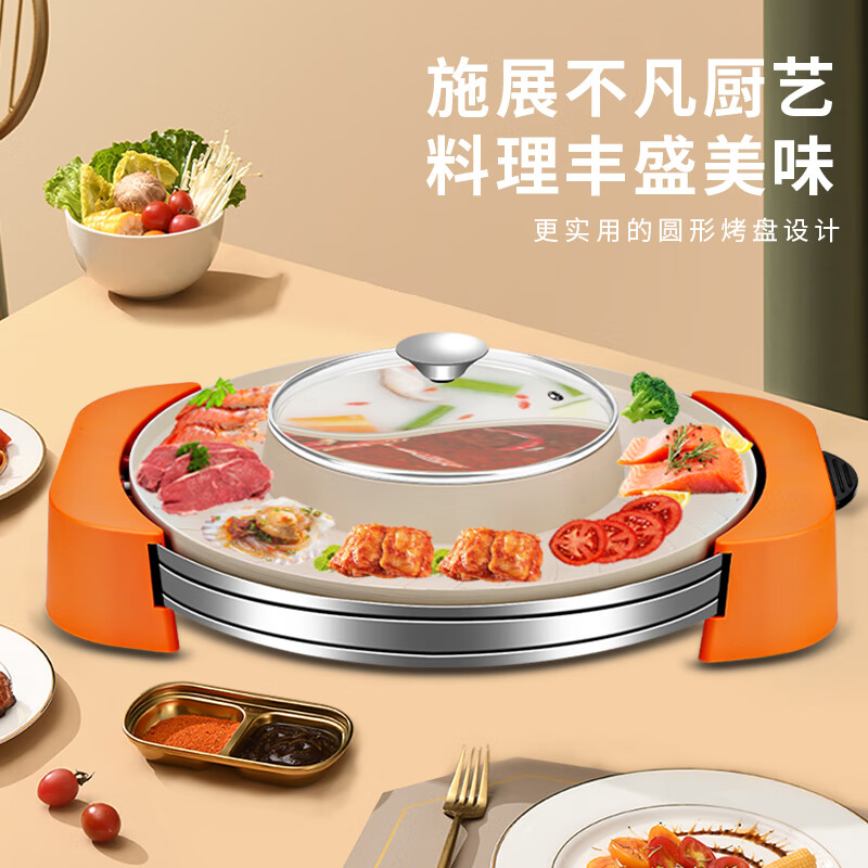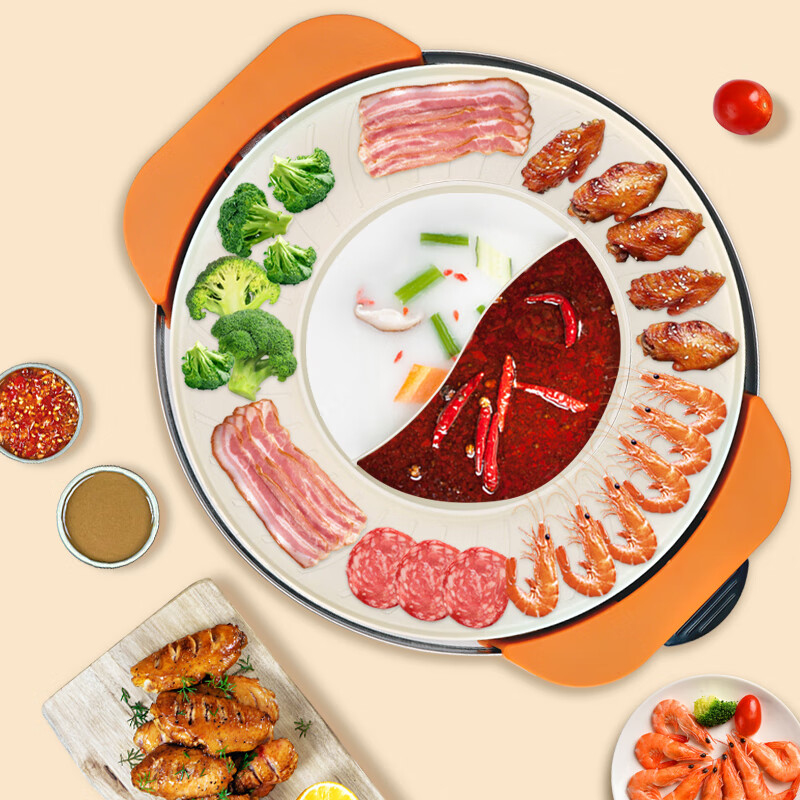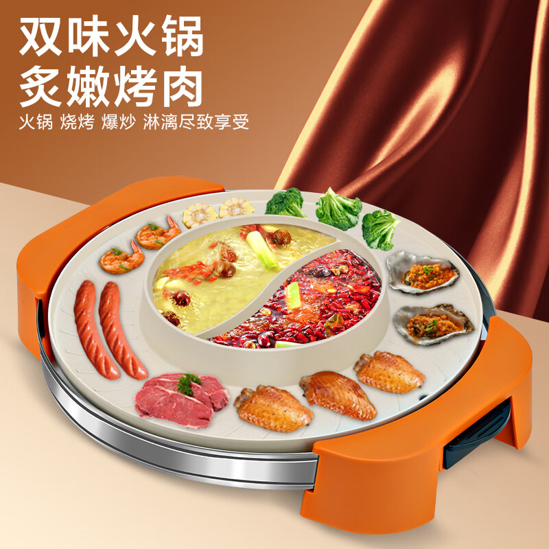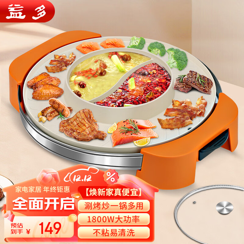 益多多功能涮烤一体锅家用插电烧烤炉麦饭石不粘烤肉锅鸳鸯锅电热火锅 SS-46A价格:149.00元!