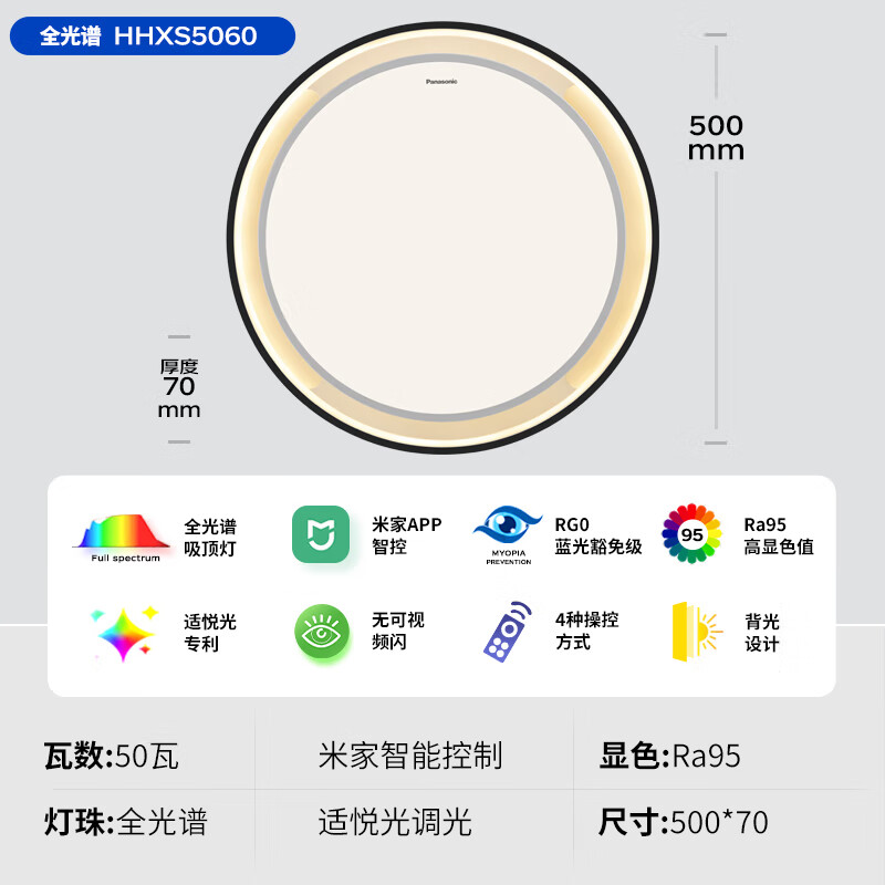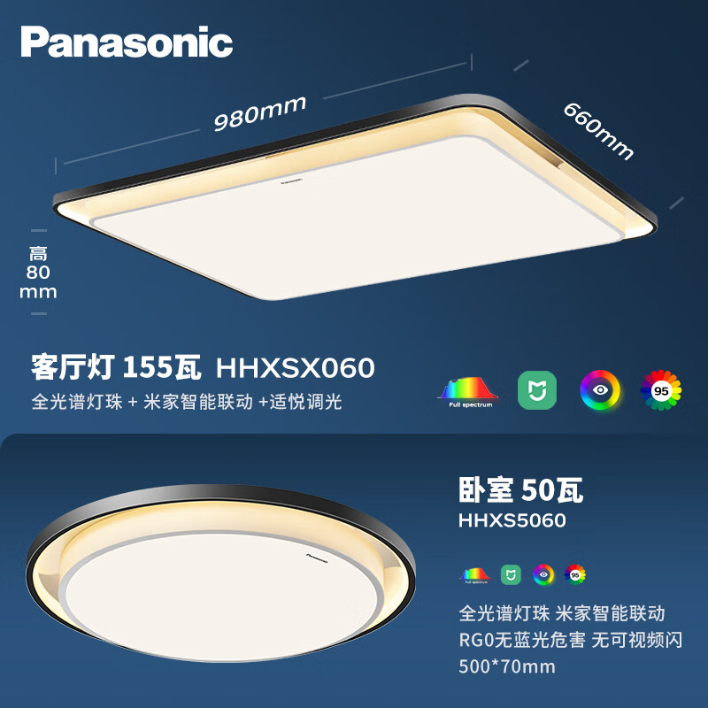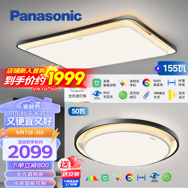 松下(Panasonic)吸顶灯全光谱护眼全屋米家智能led现代简约灯具泽巡一室一厅套装价格:2899.00元!