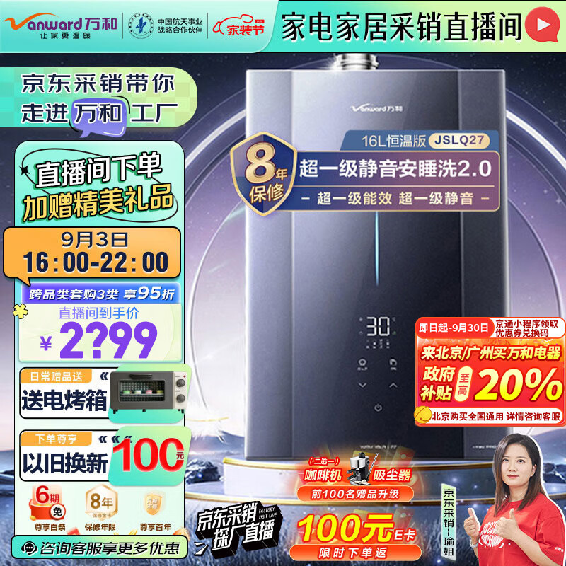 万和(Vanward)【安睡洗轻羽】燃气热水器16升天然气 超一级能效静音 下置风机密闭恒温 F9D PRO 以旧换新价格:2799.00元!