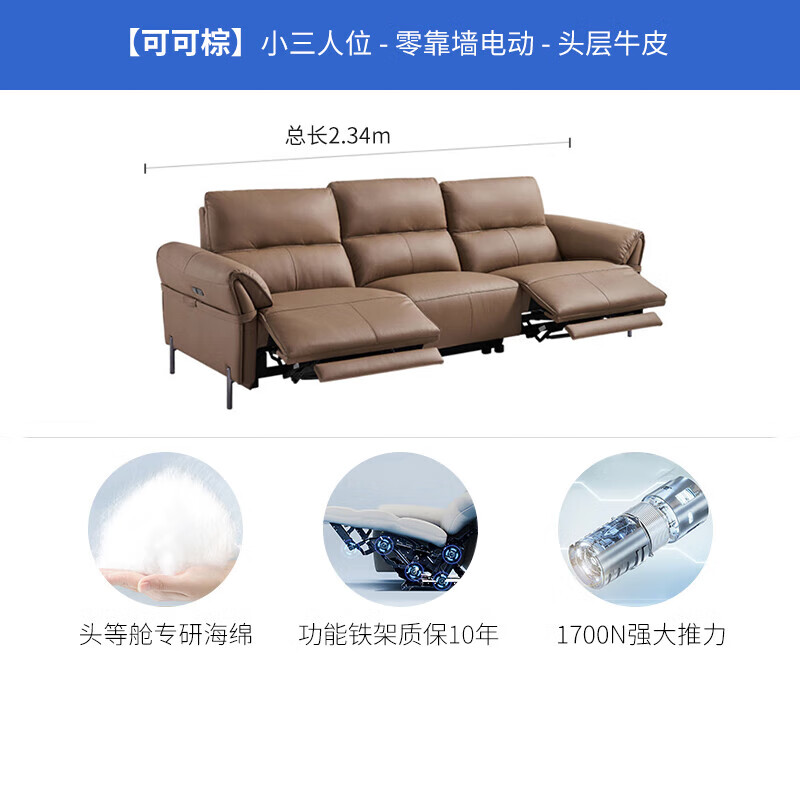 芝华仕(CHEERS)头等舱零靠墙意式轻奢真皮功能沙发美拉德客厅芝华士50795棕三价格:5299.00元!