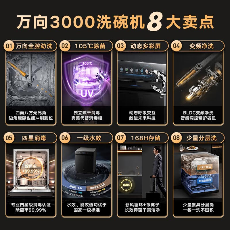 美的(Midea)万向3000洗碗机嵌入式14套【一键单消毒】105℃热风烘干四星消毒一级水效万向全腔洗洗消一体机价格:5699.00元!