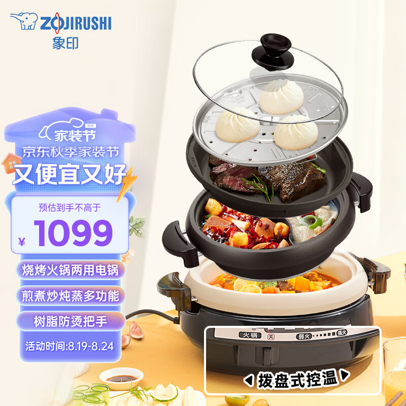象印(ZO JIRUSHI)多用途锅多功能鸳鸯电火锅 家用电热锅/电煎锅/电蒸锅/电炖锅EP-PVH30C价格:1099.00元!