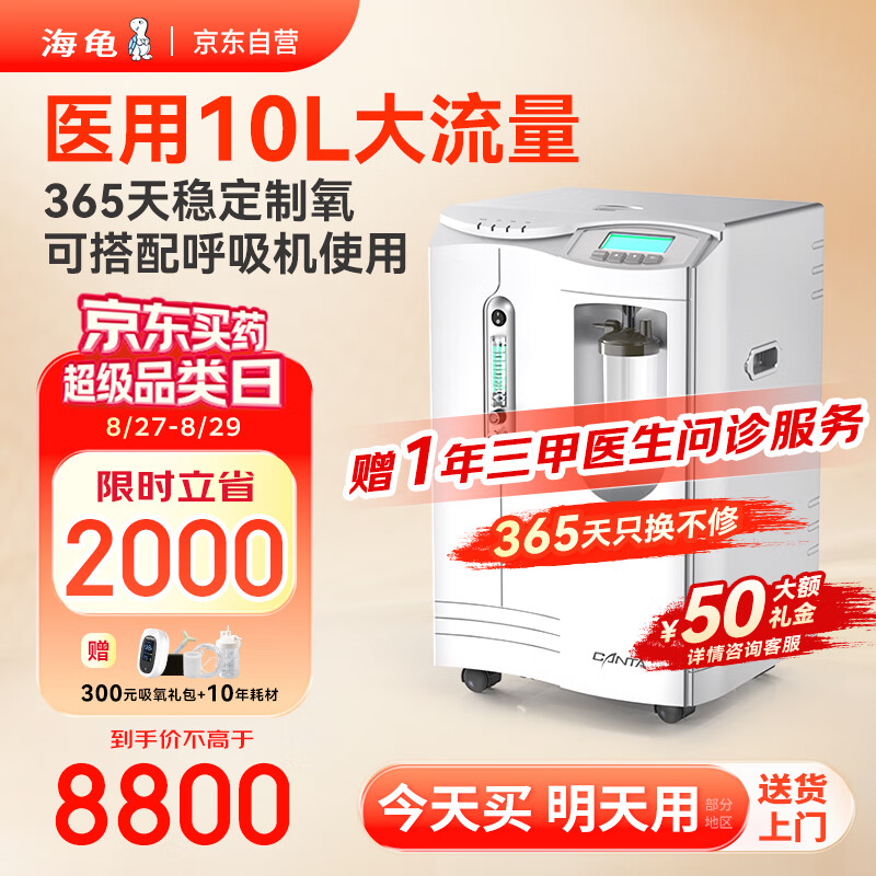 海龟(TURTLE)制氧机10升HG10-WN-NS医用级氧气机带雾化家用10L家用老人大流量吸氧机价格:11000.00元!