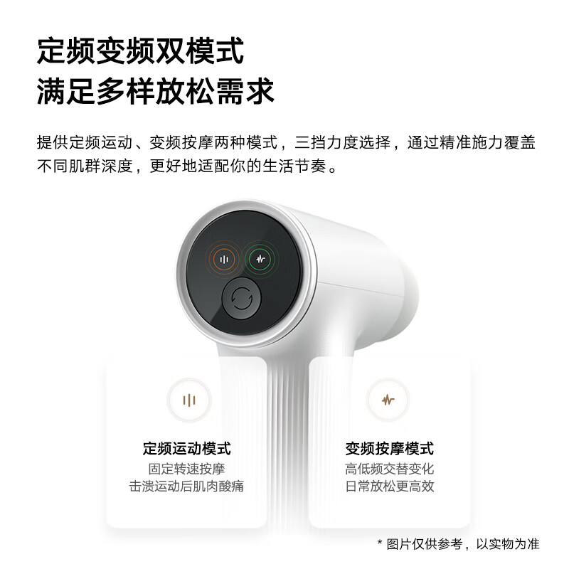 3、小米筋膜*到手了。外观好看,小巧便携,放包里带出去刚刚好。两个模式,三档调节,方便好用。运动过后使用很舒服。另外配的两个转换头也很不错。